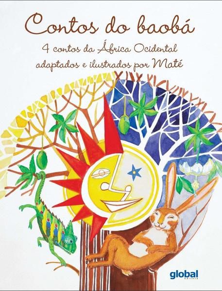 “No começo dos tempos, o céu ficava muito perto da Terra, tão pertinho que as mulheres deviam tomar cuidado para não encostar nele quando manejavam seus pilões. E à noite, quando o firmamento se iluminava, elas se armavam de longas varas e pescavam umas estrelas para suas crianças brincarem.” Assim começa a história chamada Por que os pescadores gostam do vento?, uma das quatro narrativas que compõem os Contos do baobá, um livro inspirado no repertório dos griots, os verdadeiros guardiões da cultura oral africana. A obra reúne quatro contos da África Ocidental adaptados e ilustrados por Maté. Em Contos do baobá, as histórias – “A lebre, o rinoceronte e o hipopótamo”, “Anansi e o presente de Deus”, “Por que os pescadores gostam do vento?” e “O camaleão e o chimpanzé” – são protagonizadas por personagens marcantes das narrativas tradicionais africanas. O livro apresenta ainda, antes das histórias, o griot, poeta, músico e guardião de histórias transmitidas oralmente geração após geração e explica por que todo griot precisa de um baobá, árvore gigante quase mágica.