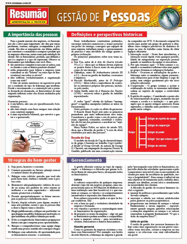 Como ser um bom gestor? Os conceitos básicos da área de recursos humanos para líderes, explicados de forma clara e objetiva neste guia prático que acompanha a trajetória profissional de seus leitores. Serve aos estudantes que precisam entender a matéria e aos profissionais que querem relembrar alguns pontos. Informações fundamentais para tocar os negócios com ainda mais eficiência. Seu conteúdo está organizado de maneira que você possa encontrar rapidamente os temas de seu interesse: recrutamento e seleção, gerenciamento de projetos, a importância de uma boa comunicação e o exemplo do gestor, como gerenciar projetos e lidar com pessoas, como fazer a gestão de conflitos, como conduzir reuniões e formar novos líderes. E ainda as dez regras de um bom gestor. Direto ao ponto, fácil de guardar, ótimo para aprender e relembrar.