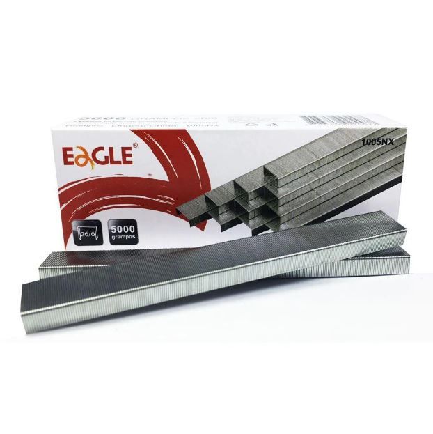 - Grampo 26/6 galvanizados Eagle. - Contém 5.000 grampos. - Cor: Prata. Vendido por unidade de caixa com 5.000 grampos.
