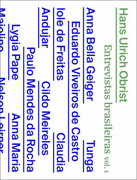 O curador e diretor da Serpentine Gallery, em Londres, Hans Ulrich Obrist viaja pelo mundo há 30 anos gravando suas conversas com artistas e pensadores sobre temas que extrapolam as artes visuais e alimentam discussões sobre a criatividade, a inventividade e a construção do futuro, da cultura e da sociedade. Em "Hans Ulrich Obrist – Entrevistas brasileiras", vol. 1, o curador apresenta uma seleção de 36 entrevistas com artistas e intelectuais pioneiros de diferentes áreas do conhecimento que nasceram no Brasil ou adotaram o país como lugar de produção de seu trabalho ao longo da vida. ENTREVISTADOS: Abraham Palatnik, Anna Bella Geiger, Anna Maria Maiolino, Antonio Manuel, Arrigo Barnabé, Arto Lindsay, Artur Barrio, Augusto de Campos, Caetano Veloso, Cildo Meireles, Claudia Andujar, Eduardo Viveiros de Castro, Emanoel Araujo, Ferreira Gullar, Frans Krajcberg, Frederico Morais e Wilma Martins, Iole de Freitas, José Celso Martinez Corrêa, Judith Lauand, Lorenzo Mammì, Lygia Pape, Miguel Rio Branco, Nelson Leirner, Oscar Niemeyer, Paulo Bruscky, Paulo Herkenhoff, Paulo Mendes da Rocha, Peter Pál Pelbart, Ruy Guerra, Sonia Andrade, Tom Zé, Tunga, Walter Zanini, Waltercio Caldas, Wanda Pimentel, Wlademir Dias-Pino.