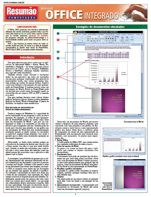 Este guia traz as principais dicas para usar os aplicativos do Office (Excel Word, PowerPoint e Outlook) de forma integrada para aproveitá-los melhor e ganhar tempo. Exemplos de documentos vinculados, como vincular ou incorporar, enviar e-mail do Word, Excel ou PowerPoint, folhetos do PowerPoint e elementos gráficos.